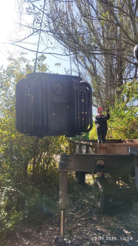 Сотрудники Петровского Западного РЭС «Региональной энергопоставляющей компании» совершили еще один маленький подвиг, заменив поврежденный трансформатор в постоянно обстреливаемом районе Донецка#Спасиб
