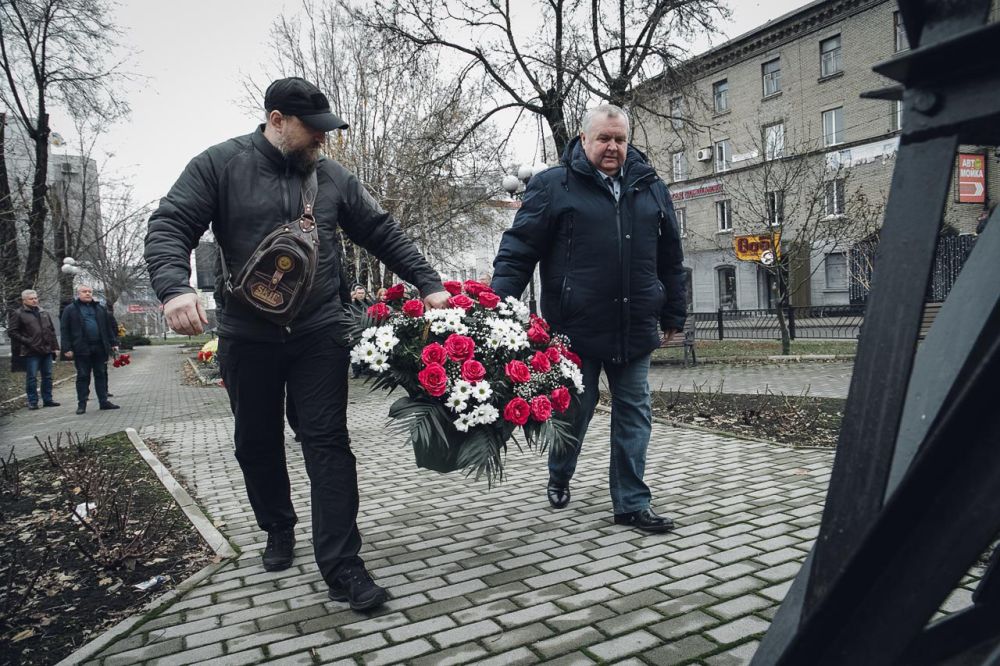 Сегодня в центре Донецка и.о. Министра угля и энергетики ДНР Денис Епифанов, руководители и сотрудники энергетических предприятий и отраслевого профсоюза возложили цветы к монументу «Памяти погибших энергетиков».