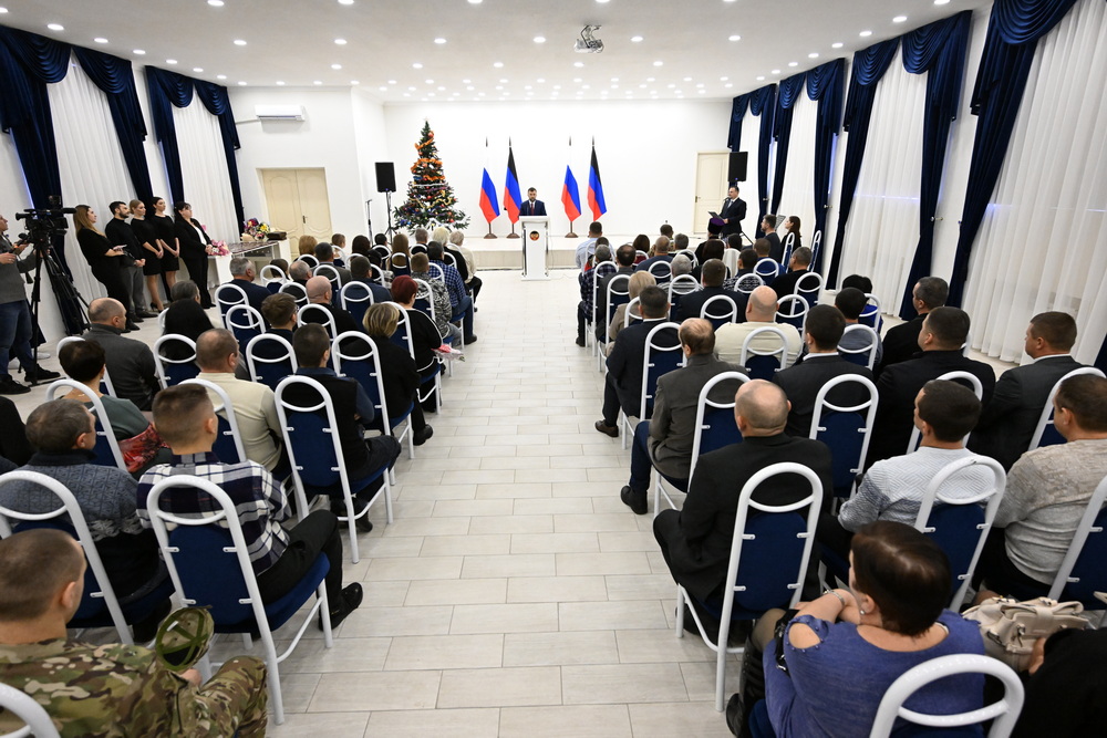 «Поздравляю вас с наградами! Я горжусь, что у меня такие земляки. Сегодня я имел возможность обнять и пожать руку тем, кто считает Донбасс своей родиной, своей землей и делает это абсолютно искренне. Спасибо!» ‒ поздравил награжденных Денис Пушилин.