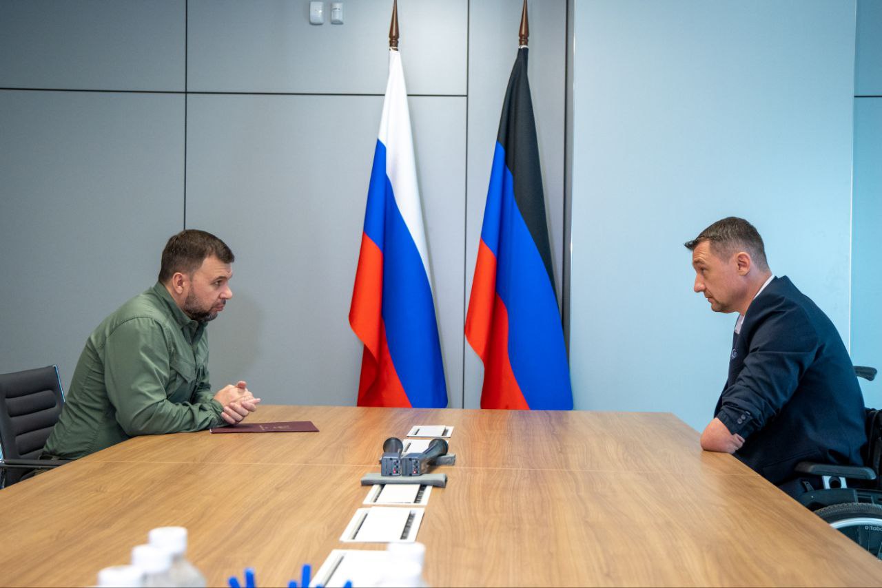 В понедельник, 3 июня, Глава Донецкой Народной Республики Денис Пушилин встретился с паралимпийцем, мотивационным спикером и учредителем одного из белорусских благотворительных фондов Алексеем Талаем,