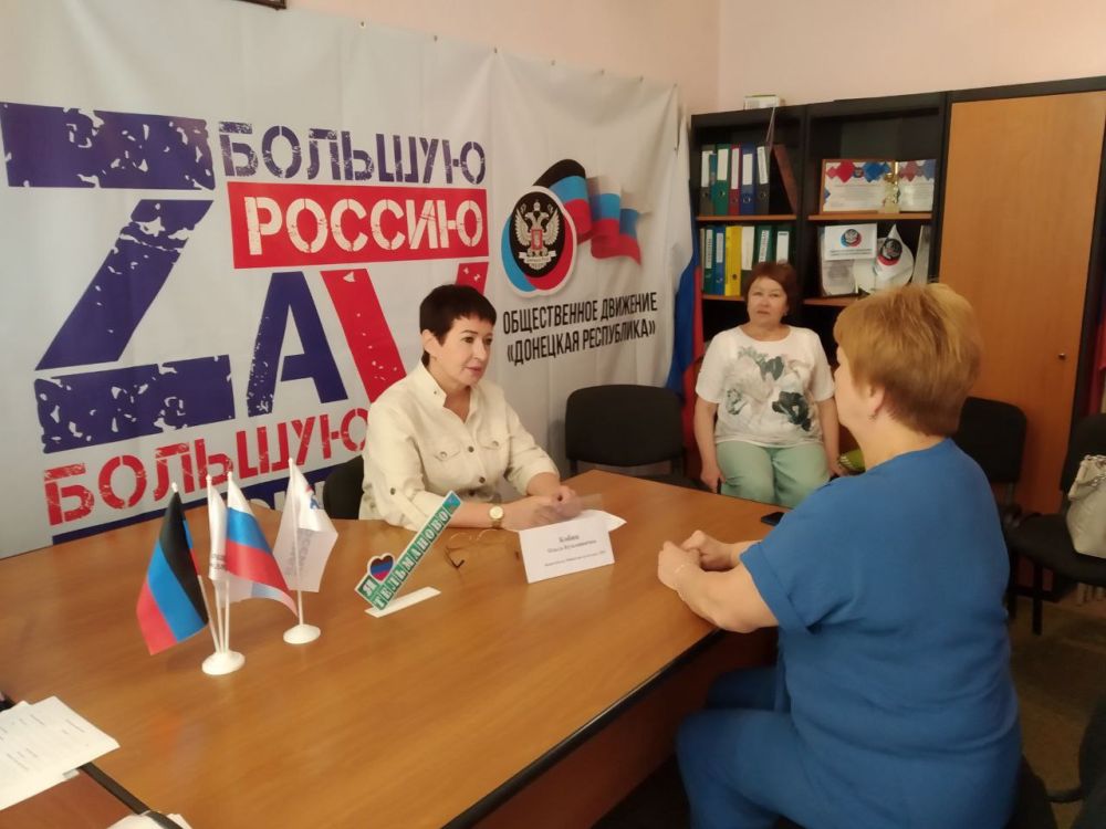 27 июня заместитель Министра культуры Донецкой Народной Республики Ольга Кобец провела прием граждан в общественной приемной партии «ЕДИНАЯ РОССИЯ» в Тельмановском районе.