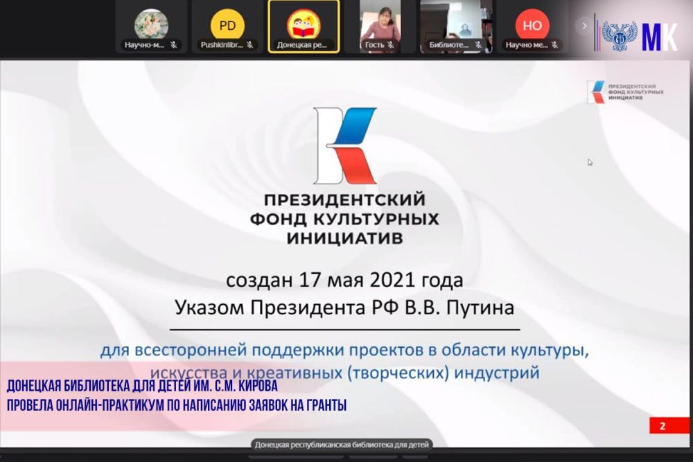 ДОНЕЦКАЯ БИБЛИОТЕКА ДЛЯ ДЕТЕЙ ИМ. С.М. КИРОВА ПРОВЕЛА ОНЛАЙН-ПРАКТИКУМ ПО НАПИСАНИЮ ЗАЯВОК НА ГРАНТЫ