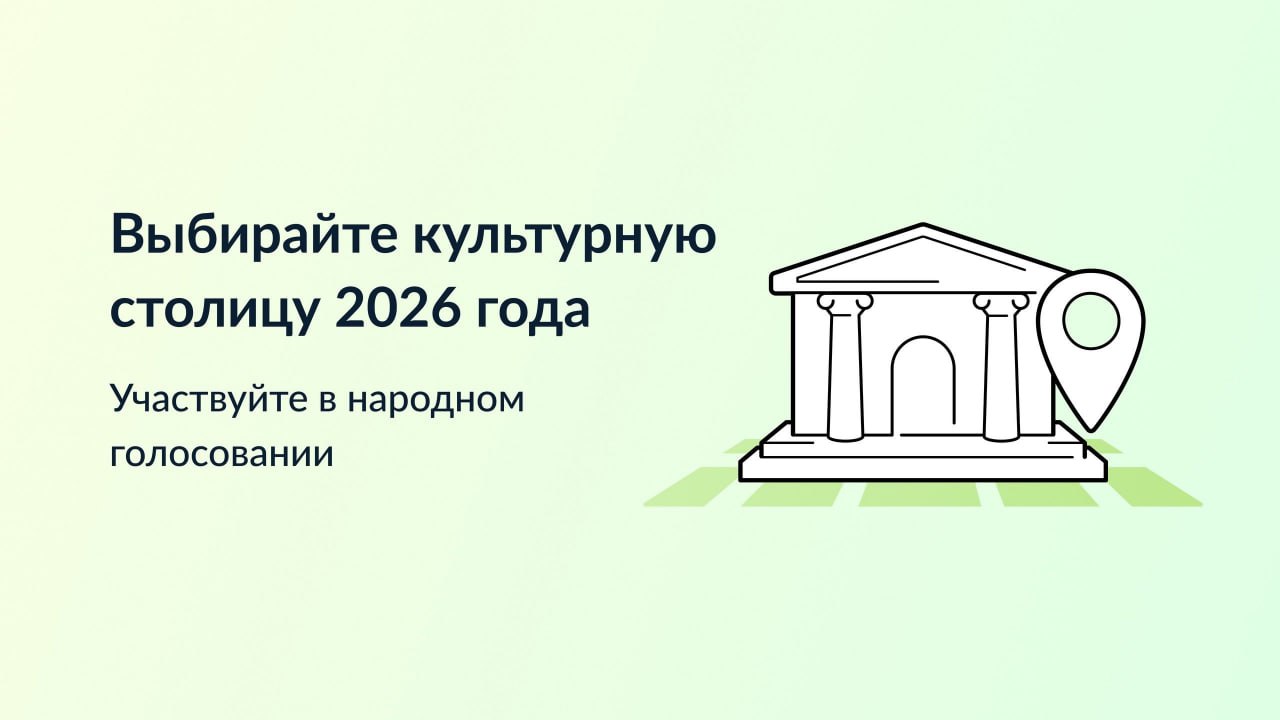Россияне смогут проголосовать за Культурную столицу 2026 года. Конкурс проводится, чтобы поддержать культурное развитие регионов, показать их самобытность, туристический и экономический потенциал.