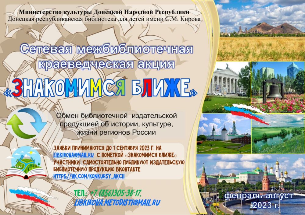 В Донецкой республиканской библиотеке для детей имени С.М. Кирова завершилась сетевая межбиблиотечная краеведческая акция «Знакомимся ближе», которая проходила с февраля по август 2023 г.