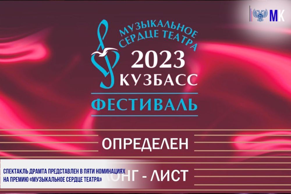 СПЕКТАКЛЬ ДРАМТА ПРЕДСТАВЛЕН В ПЯТИ НОМИНАЦИЯХ НА ПРЕМИЮ «МУЗЫКАЛЬНОЕ СЕРДЦЕ ТЕАТРА»Донецкий республиканский академический молодежный театр в начале 2023 года подал заявку на участие в Национальном Фе