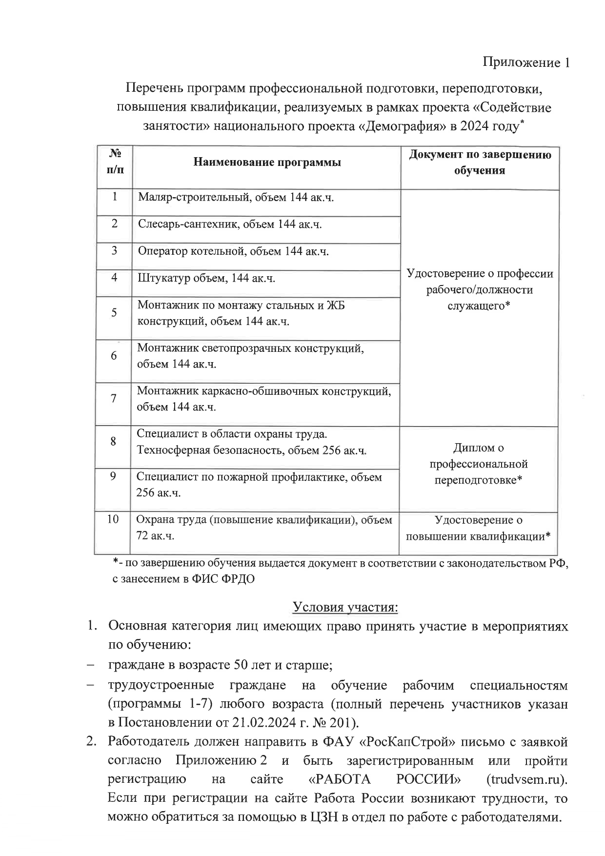 - трудоустроенные граждане на обучение рабочим специальностям (программы 1-7) любого возраста (полный перечень участников указан в Постановлении от 21.02.2024 г. № 201 ).