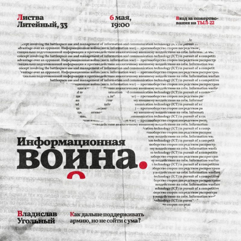 6 мая в 19:00 у нас выступит военный обозреватель из Донецка Владислав Угольный с темой «Информационная война. Как дальш