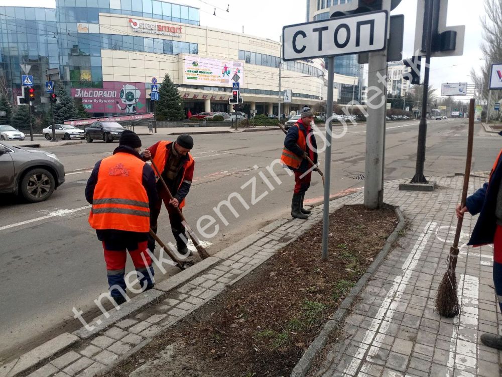 Сегодня работники "Дорожного ремонтно-строительного управления" выполняли ручную уборку дорог и тротуаров по ул. Артёма в Киевском районе.