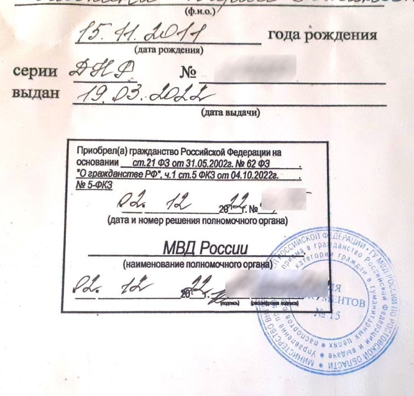 Анастасия Селиванова: ДОКУМЕНТЫ О ГРАЖДАНСТВЕ ДЕТЕЙ ИЗ ДНР, РОЖДЕННЫХ ПОСЛЕ 30 СЕНТЯБРЯ 2022 ГОДА, НА МОМЕНТ РОЖДЕНИЯ КО