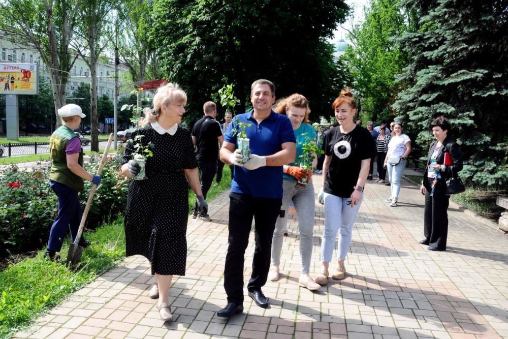 В высадке принимали участие глава администрации Ворошиловского района г. Донецка Татьяна Копылова, кандидаты в депутаты от Партии «Единая Россия» Виктория Хощенко и Эдуард Либерман, сотрудники, МУП АГД «Зеленое строительство Ворошиловского района г. Донецка», и жители района.