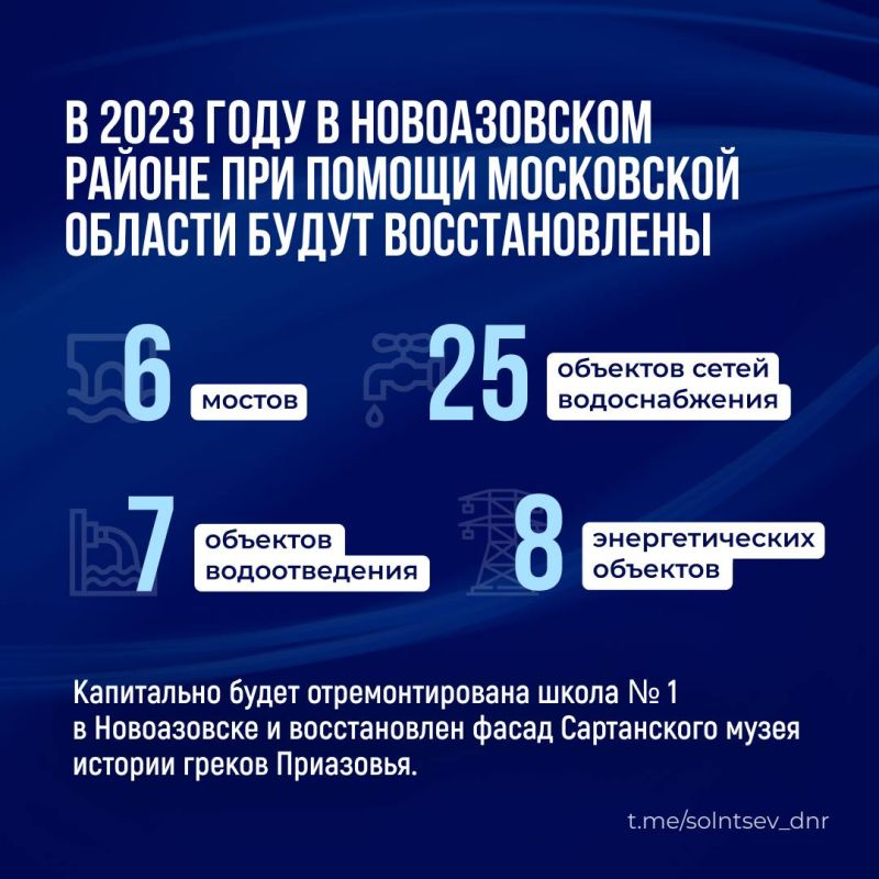У Новоазовского района есть хороший туристический потенциал, а благодаря усилиям Московской области он обязательно будет раскрыт. В 2022 году было сделано много: социальные объекты, дороги, мосты. Но это только начало. В 2023 году Подмосковье планирует взять в работу 50 объектов в Новоазовском районе Донецкой Народной Республики.