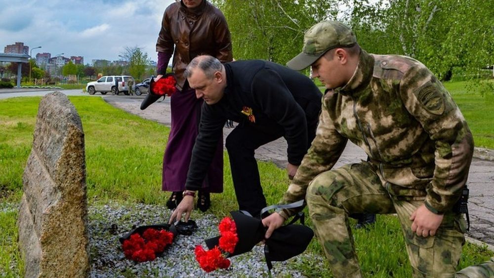 В Донецке возложили цветы к Мемориальному знаку, установленному в память жертвам одесской Хатыни. Фото: ТГ/Кулемзин