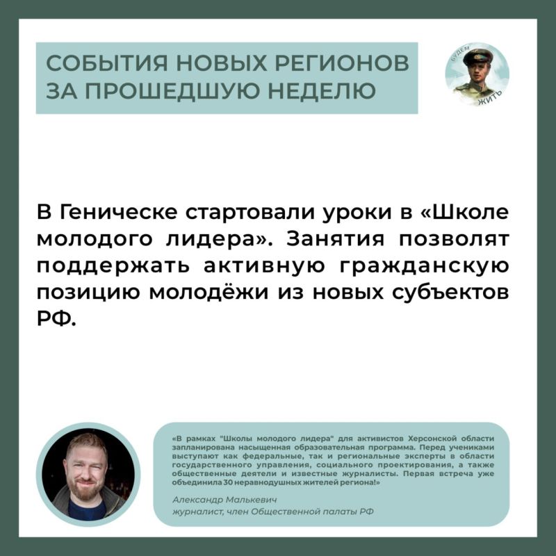 В рубрике #Малькевич_важное о позитивных изменениях рассказывает известный журналист, сопредседатель Координационного совета ОП РФ по интеграции новых регионов Александр Малькевич