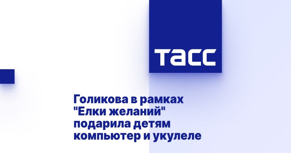 МОСКВА, 4 января. /ТАСС/. Вице-премьер РФ Татьяна Голикова в рамках благотворительной акции "Елка желаний" подарила детям компьютер и укулеле. Об этом сообщили в среду журналистам в секретариате вице-премьера.