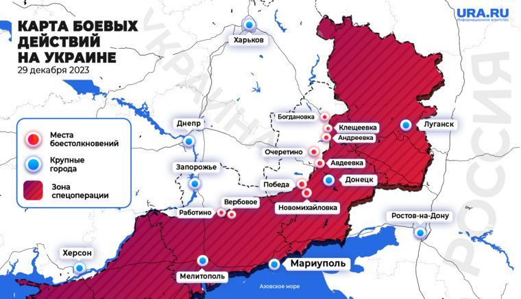 Донецкое направлениеПо данным telegram-канала Readovka, на Авдеевском участке российские бойцы начали наступление в направлении Очеретино. Также ВС РФ продвигаются у промзоны и в районе Северного. На Марьинском участке идет штурм позиций ВСУ у Победы и Новомихайловки.