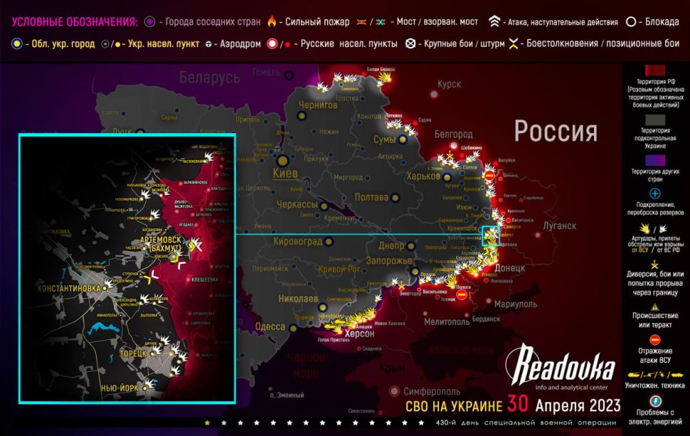 Карта военных действий и ситуация на фронтах вечером 30 апреляРусская армия посетила ВСУ в Краматорске и Павлограде, уничтожая украинских боевиков и технику