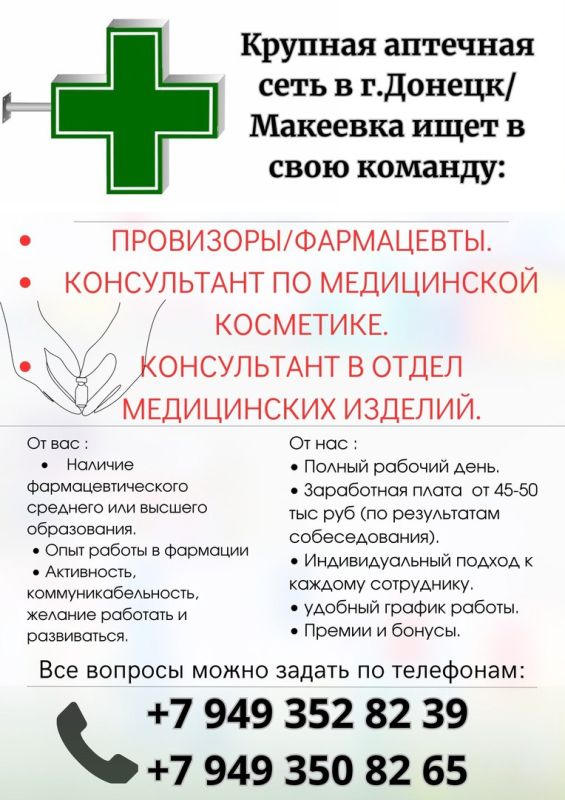Крупная аптечная сеть в г.Донецк/Макеевка ищет в свою команду: