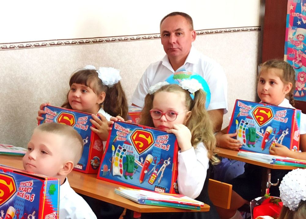 На торжественной линейке, глава района вручил школьные комплекты будущим первоклассникам и пожелал, чтобы ребята учились только на отлично и всегда были гордостью своих родителей.