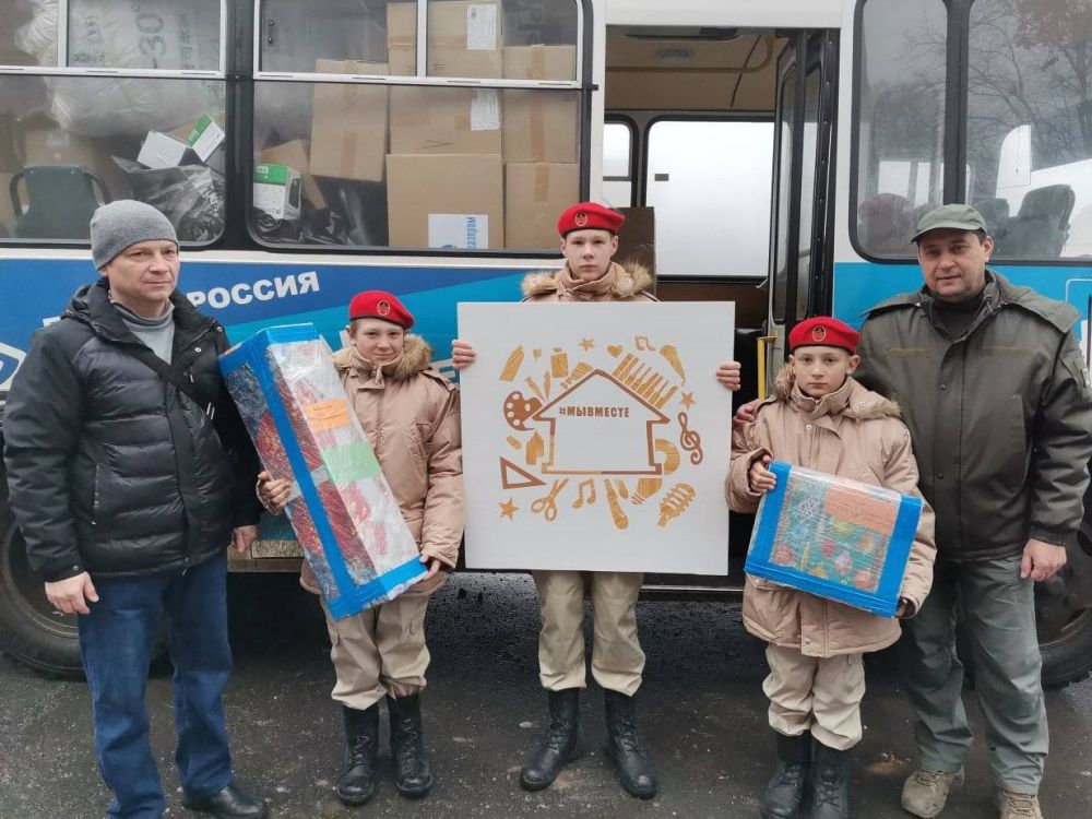 В рамках шефской помощи местная ДЮСШ получила автобус, а юным жителям города прислали книги, канцелярию и продукты.