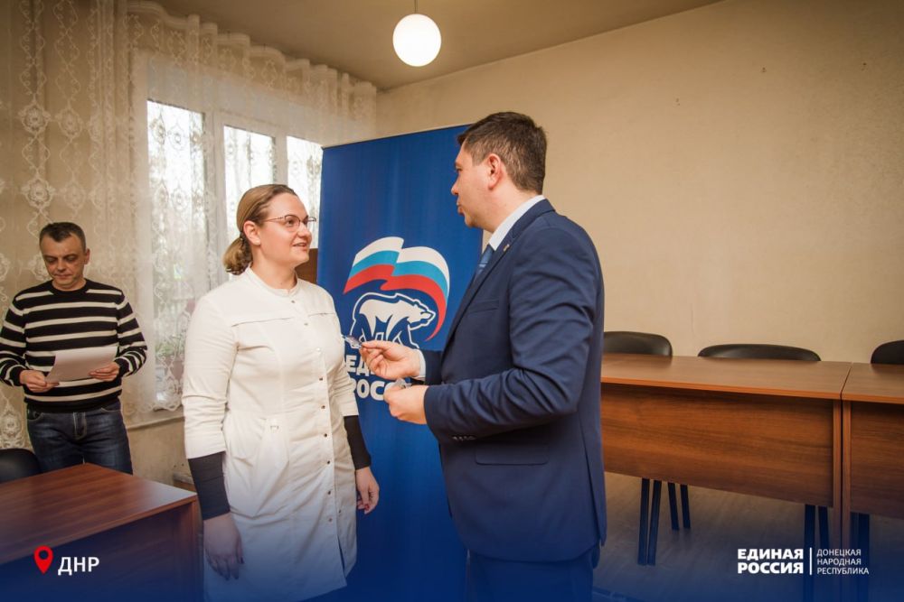 В преддверии Нового года партийные ряды пополнились людьми, которые стоят на страже здоровья детей Республики. Партийные билеты сотрудникам Республиканской клинической детской больницы торжественно вручил депутат Народного Совета ДНР Сергей Ярош.