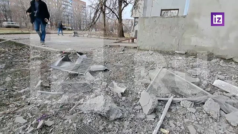 Последствия обстрела Куйбышевском района Донецка, прилет 155 мм снаряда