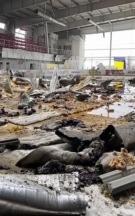 Последствия российского ракетного удара по ледовой арене "Альтаир" в ДружковкеВерсия о размещении там личного состава ВСУ подтверждается