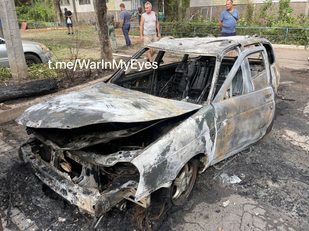 Прилёт ракеты РСЗО во двор дома по улице Университетская 120. Киевский район Донецка.