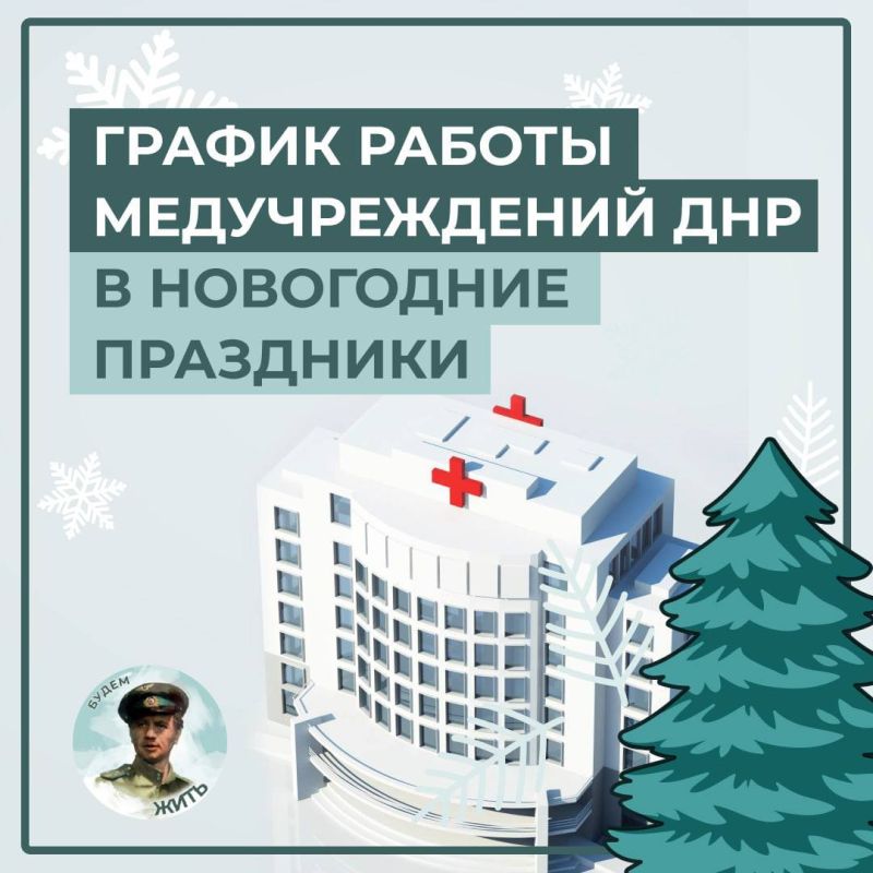 Режим работы медицинских учреждений ДНР в новогодние праздникиУстановленный Минздравом республики график приёма пациентов в праздничный период смотрите в карточкахЧто важно знать? Точное время работы