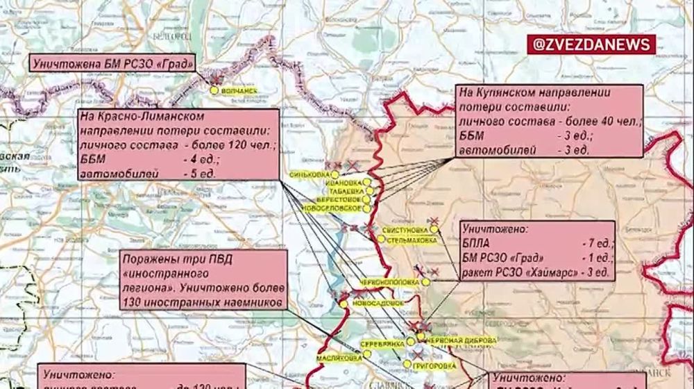 Российская артиллерия уничтожает пункты базирования ВСУКак отметили в Минобороны РФ, на Купянском направлении в Харьковской области уничтожено более 40 украинских военнослужащих и бронетехникаРакетные
