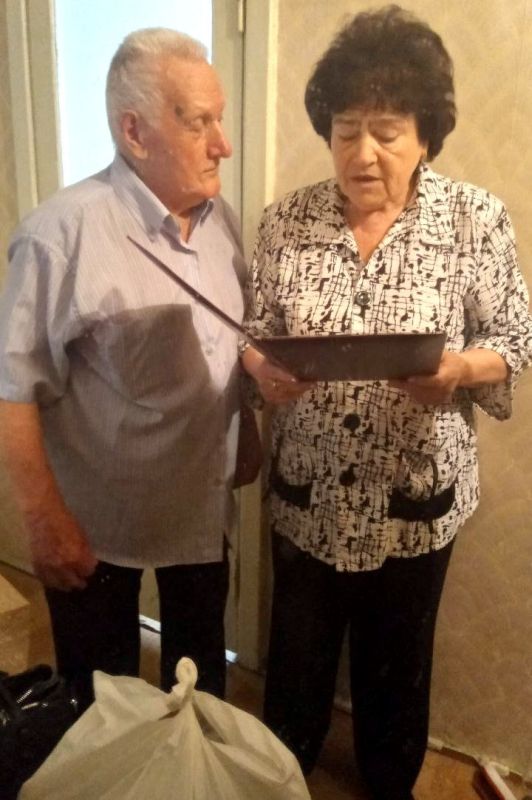 Председатель Ворошиловской районной в г. Донецке организации Ветеранов Ася Книшевицкая и волонтеры Партии «Единая Россия» поздравили ветерана со значимой датой, поинтересовались его здоровьем, а также передали продуктовый набор, набор бытовой химии и поздравительный адрес от руководителя Центрального исполкома Общественного Движения «Донецкая Республика» Алексея Муратова.