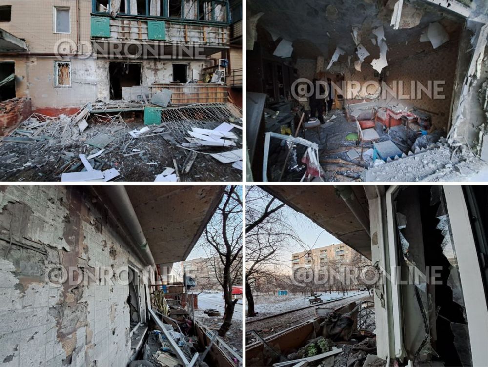 На фото видно, что удары наносились по мирным жилым объектам — многоквартирным домам. Всего, по данным НИ ДНР, за сутки украинские боевики выпустили 102 единицы боеприпасов из ствольной артиллерии калибром 152 мм и 155 мм.