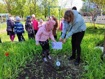 Присоединились к акции и воспитанники детского сада «Дюймовочка» г. Енакиево. Они высадили туи в честь участницы Великой Отечественной войны Марии Семеновны Батраковой и Иванова Владлена Вадимовича - участника Специальной военной операции.
