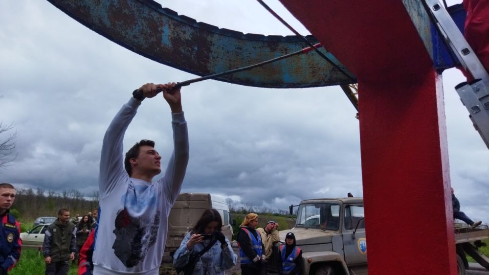 В рамках акции «Всероссийский субботник» активисты регионального отделения ВОД «Волонтёры Победы» Донецкой Народной Республики совместно с представителями других молодежных организаций Республики перекрасили в российский триколор стеллу на въезд в пгт. Мангуш, который находится недалеко от г. Мариуполя.