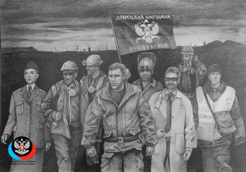 Батя…что-то родное и близкое в этом слове. Именно такой позывной носил Александр Владимирович. Картина, написанная простым карандашом, совсем не так проста, она глубока и является квинтэссенцией народной любви. Мы видим, что за спиной Главы-Бати стоят работники различных профессий, часто встречаемых на Донбассе. Это шахтеры, металлурги, врачи, железнодорожники, коммунальщики...