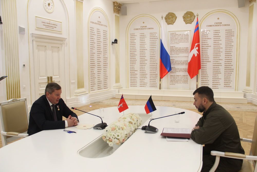 Денис Пушилин и Андрей Бочаров обсудили вопросы сотрудничества и укрепления связей между ДНР и Волгоградской областью
