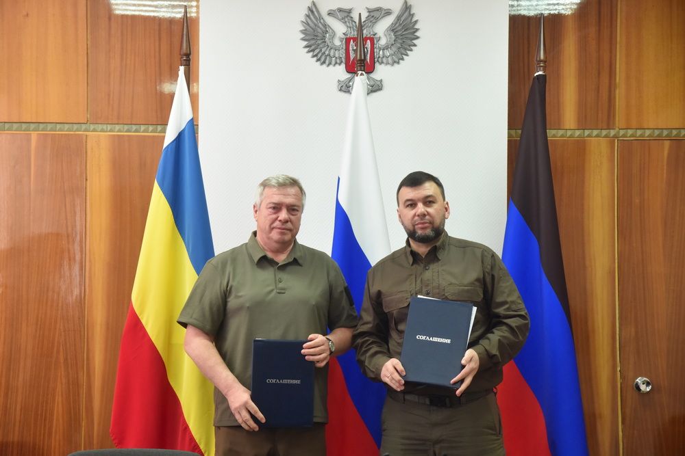 В четверг, 27 апреля, временно исполняющий обязанности Главы Донецкой Народной Республики Денис Пушилин и губернатор Ростовской области Василий Голубев подписали Соглашение о торгово-экономическом, научно-техническом, социальном и культурном сотрудничестве между Ростовской областью и Донецкой Народной Республикой.