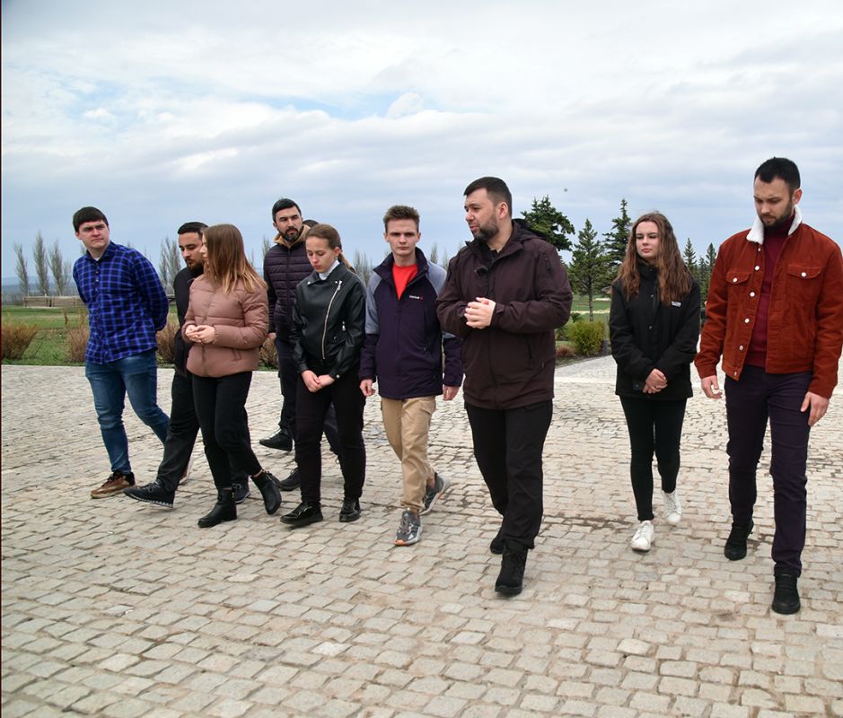 В среду, 12 апреля, временно исполняющий обязанности Главы Донецкой Народной Республики Денис Пушилин провел экскурсию для молодежи Республики в рамках акции «Прогулка со Знанием», инициированной Росс