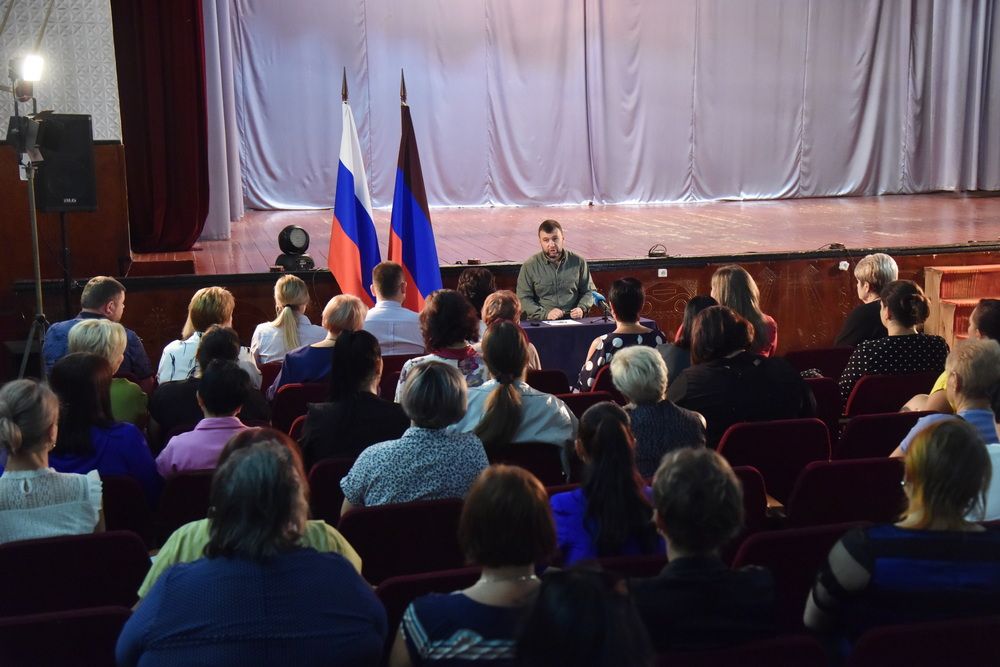 Во вторник, 5 сентября, временно исполняющий обязанности Главы Донецкой Народной Республики Денис Пушилин с рабочим визитом посетил поселок городского типа Тельманово и встретился с сотрудниками сфер