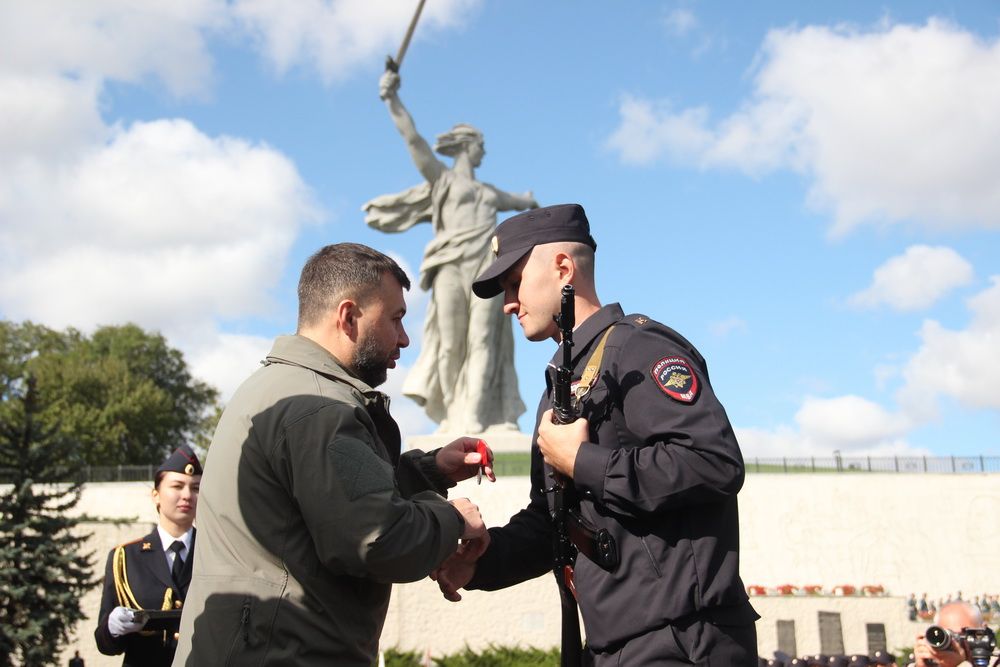В субботу, 7 октября, Глава Донецкой Народной Республики в ходе рабочей поездки в Волгоградскую область принял участие в церемонии принятия присяги первых офицеров, а именно курсантов 5-х курсов Федерального государственного казенного образовательного учреждения высшего образования «Волгоградская академия Министерства внутренних дел Российской Федерации».