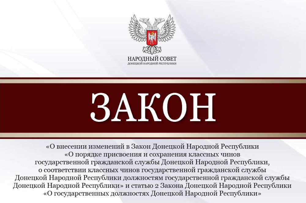 «Проект закона предусматривает установление нормы, согласно которой должность заместителя Председателя Правительства Донецкой Народной Республики – руководителя Представительства Донецкой Народной Республики в городе Москве включается в перечень государственных должностей нашего региона. Одновременно с этим данная должность исключается из таблицы соответствия классных чинов должностям гражданской службы», – рассказал парламентарий.