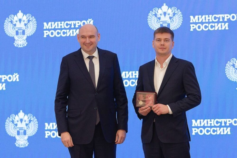 Также в рамках рабочей поездки в Москву Председатель Правительства Евгений Солнцев вручил юбилейные медали, посвященные годовщине принятия в Российскую Федерацию Донецкой Народной Республики, представителям Минстроя России.