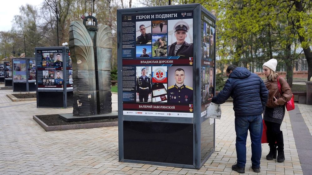 В центре Донецка, на бульваре Пушкина, открылась фотовыставка «Герои и подвиги». Она посвящена специальной военной операции. Выставку организовало Российское военно-историческое общество при поддержке Министерства обороны Российской Федерации.