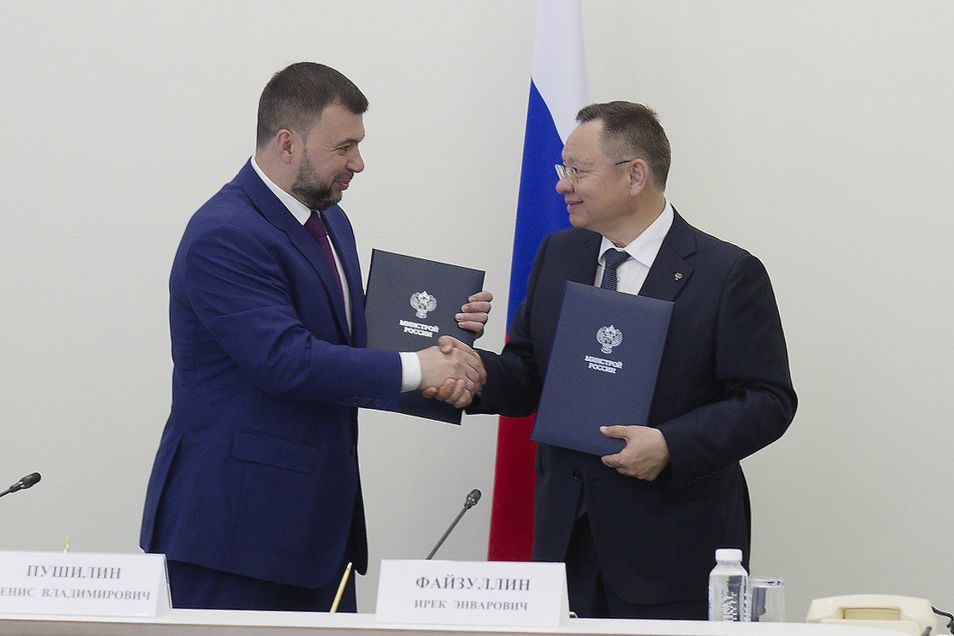 Ирек Файзуллин и Денис Пушилин подписали соглашение о сотрудничестве между Минстроем РФ и Правительством ДНР