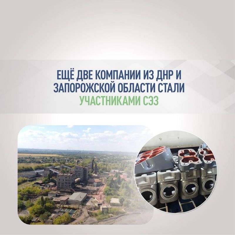 «Число компаний в реестре СЭЗ динамично растет. За три дня документ пополнился еще двумя компаниями и общий показатель вырос до 22. Статус участника свободной экономической зоны позволит предприятиям из новых регионов воспользоваться налоговыми льготами, эффективно реализовать инвестиционные проекты в машиностроении и горно-обогатительной отрасли. Напомню, что Законом о СЭЗ предусмотрен целый ряд преференций именно с учетом отраслевой специфики новых регионов. В том числе — нулевая ставка налога на добычу полезных ископаемых на уголь и железную руду, добытых в рамках инвестиционного проекта на территории СЭЗ», — уточнил глава ФРТ.