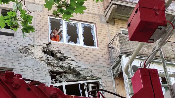 Повсюду – выбитые стекла и куски бетона. Повреждения получили сразу несколько квартир. Сотрудники коммунальных служб устраняют последствия. Впереди осень – необходимо как можно скорее восстановить разрушенное обстрелом жилье.