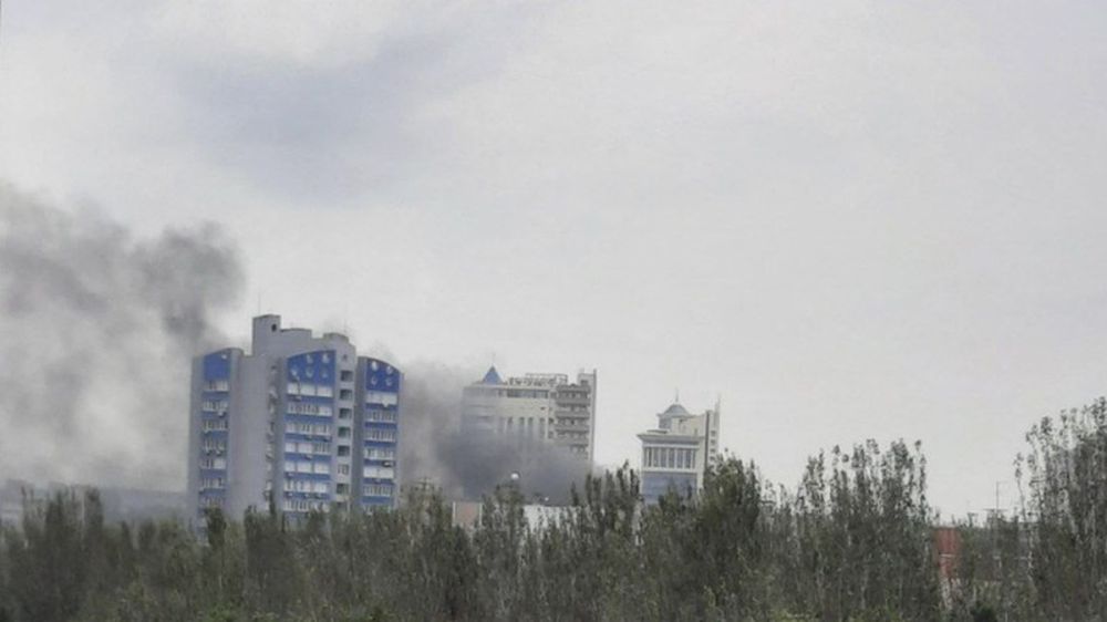 Глава администрации Донецка Алексей Кулемзин заявил о прямом попадании украинского снаряда в здание ТРЦ, а также сообщил о повреждении хозпостроек и жилых домов.