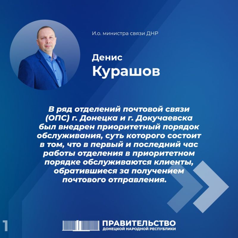 Руководитель Минсвязи Денис Курашов о правилах приоритетного обслуживания клиентов в некоторых отделениях почтовой связиДонецкий таможенный пост:ОПС Донецк 1 (г