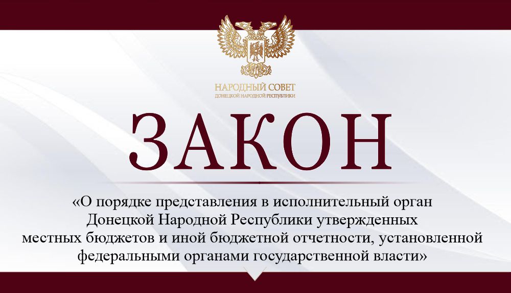 Закон «О порядке представления в исполнительный орган Донецкой Народной Республики утвержденных местных бюджетов и иной бюджетной отчетности, установленной федеральными органами государственной власти» принят депутатами в двух чтениях в целом и вступает в силу с 1 января 2024.