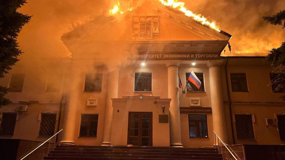 Предварительно известно, что украинские военные использовали кассетные боеприпасы при обстреле города, после которого загорелось здание университета.