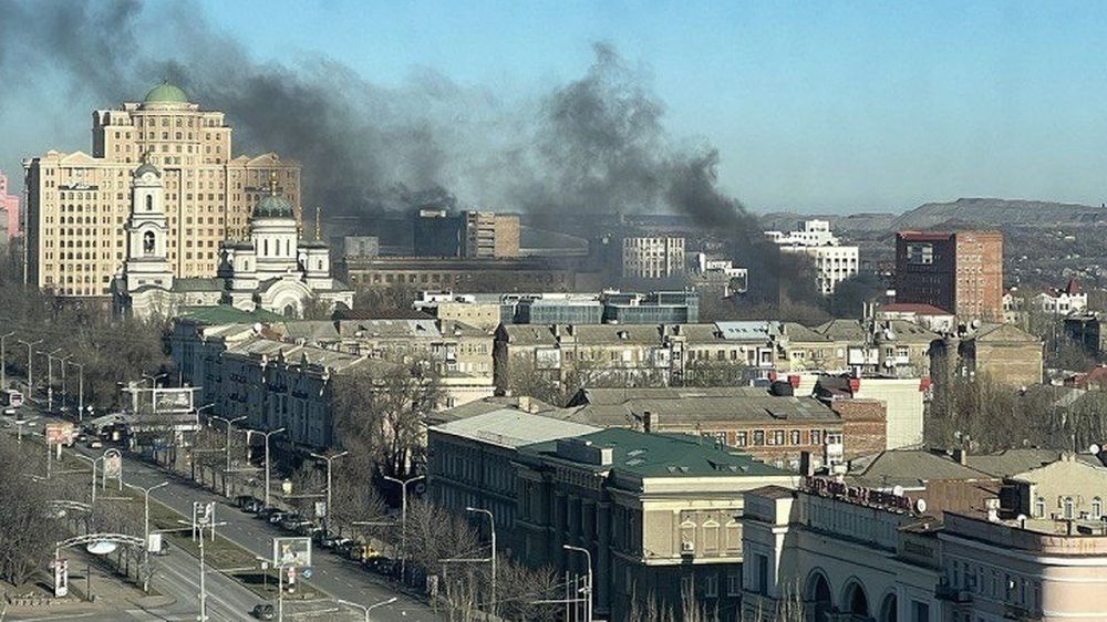 Он уточнил, что в этой части Донецка наблюдается задымление.